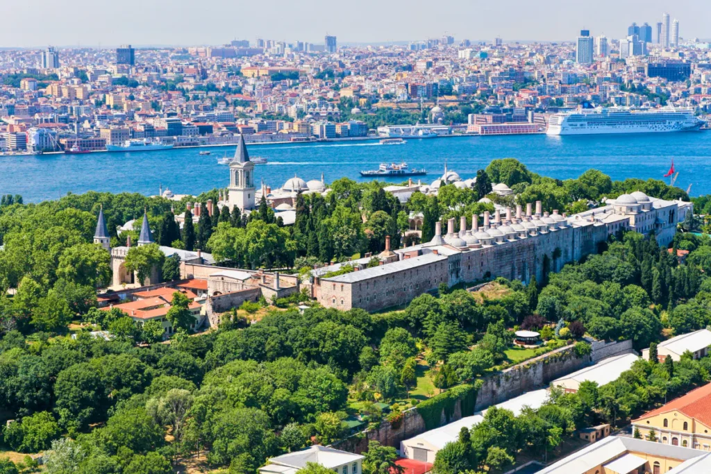 Дворец Топкапы — резиденция османских султанов почти 400 лет. В четырёх дворах комплекса расположены парадные залы, гарем, сокровищница и знаменитая коллекция кухонной посуды и оружия.